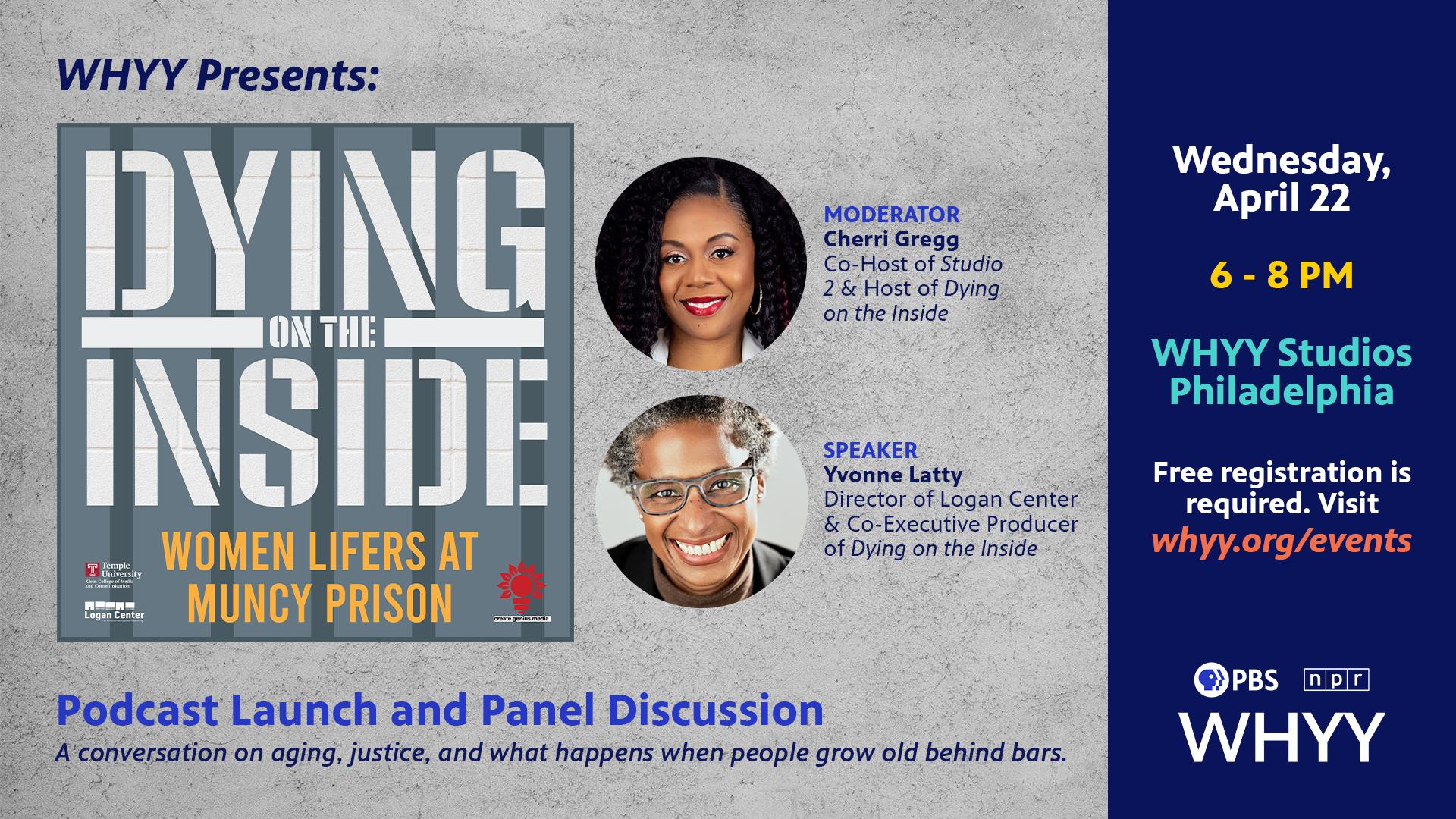 What happens when people grow old in a system that was never built to care for them? Join WHYY for the launch of Dying on the Inside: Women Lifers at Muncy Prison—new investigative podcast examining the national crisis of aging and dying behind bars through the eyes of women service life sentences in Pennsylvania. Hosted by Cherri Gregg, co-host of Studio 2, and produced in partnership with Temple University’s Logan Center for Urban Investigative Reporting, the series brings listeners inside one of the most urgent—and often overlooked—issues in the criminal justice system.